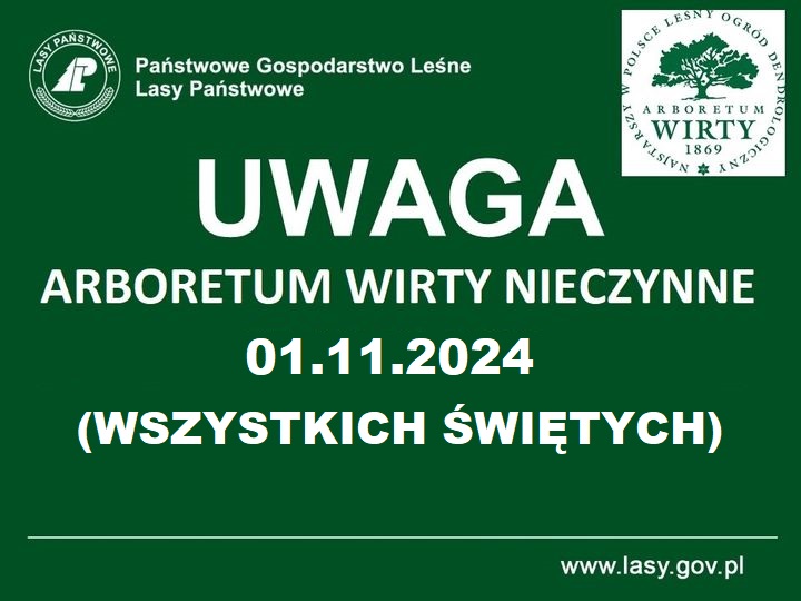 W dniu 1.11.2024 (DZIEŃ WSZYSTKICH ŚWIĘTYCH) Arboretum Wirty nieczynne.